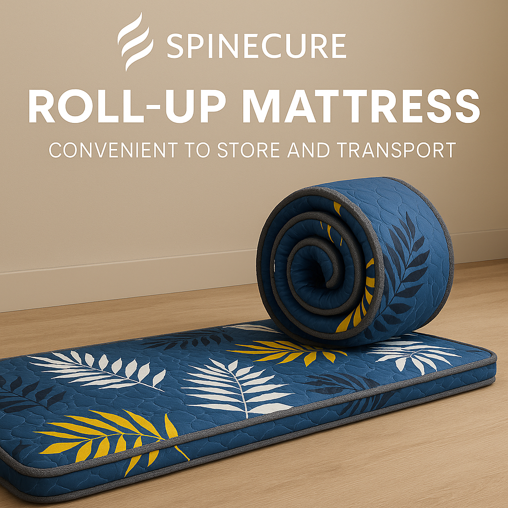 Rollable HD Foam Travel Mattress – Slim & Foldable by Spinecure (Blue)