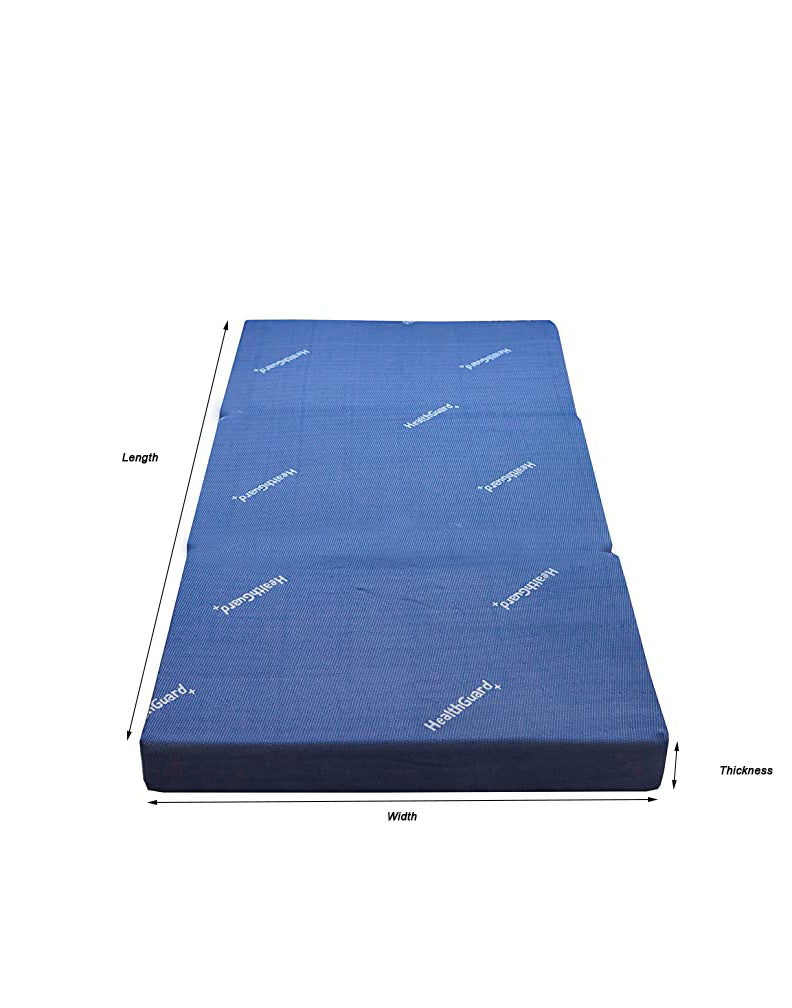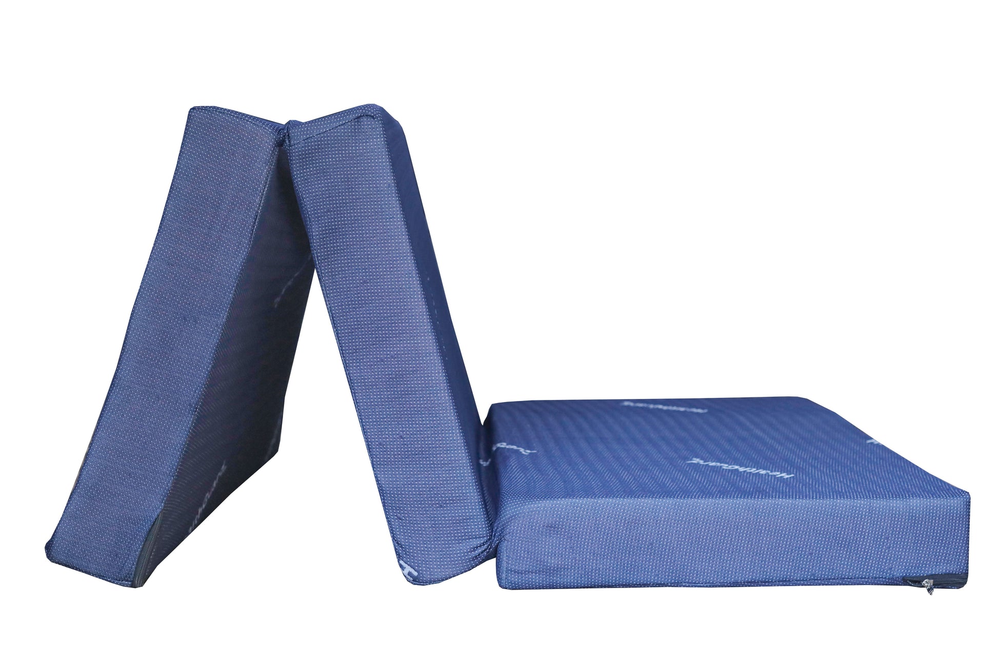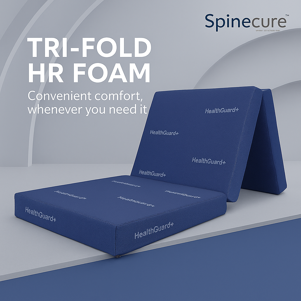 Easy-to-carry tri-fold HR foam mattress with firm orthopedic support for healthy spine alignment.