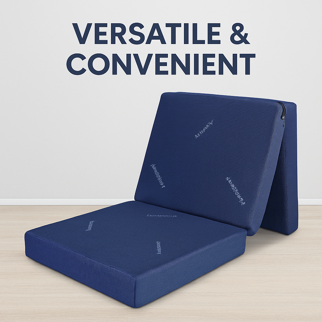 Durable tri-fold HR foam mattress designed for comfort on both sides, giving you double the use.